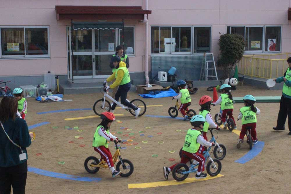 そんな折にこの自転車教室のデモ公開があると聞き、職員を派遣したところ、新たな気づきが多々あり、当園の環境や幼児期の子どもたちにとって、安全教育として必要で重要であると判断し導入することにしました。